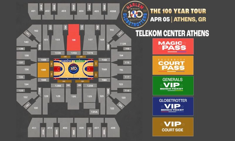 Για πρώτη φορά, η ομάδα θα παρουσιάσει και τις νέες επετειακές εμφανίσεις των 100 Χρόνων, τιμώντας έναν αιώνα παγκόσμιου αντίκτυπου, καθώς θα αναμετρηθεί με τους διαχρονικούς της αντιπάλους, τους Washington Generals. Οι φίλαθλοι μπορούν επίσης να περιμένουν ολοκαίνουργιες εκπλήξεις, όπως τη Χρυσή Μπάλα της Spalding®, επικές εμπειρίες Magic Pass πριν τον αγώνα και μια αξέχαστη συνεδρία αυτόγραφων στο 5ο Δεκάλεπτο (ΔΩΡΕΑΝ ΓΙΑ ΟΛΟΥΣ ΤΟΥΣ ΦΙΛΑΘΛΟΥΣ!) — καθιστώντας αυτή τη γιορτή μοναδική στο είδος της.
