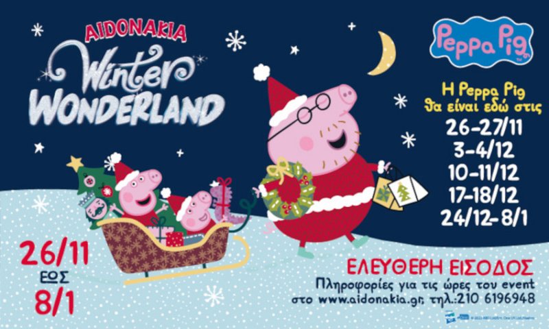 Φέτος τα Χριστούγεννα η Πέππα το γουρουνάκι έρχεται στα Αηδονάκια για να κάνει τις γιορτές σας … μοναδικές! Από 26 Νοεμβρίου έως 8 Ιανουαρίου περιμένει όλα τα παιδιά να τη γνωρίσουν από κοντά και να φωτογραφηθούν μαζί της στο πιο αγαπημένο Λούνα Παρκ της πόλης, που μεταμορφώνεται σε Winter Wonderland και προσφέρει αμέτρητα παιχνίδια, δράσεις για όλους και ατελείωτες στιγμές χαράς και διασκέδασης!